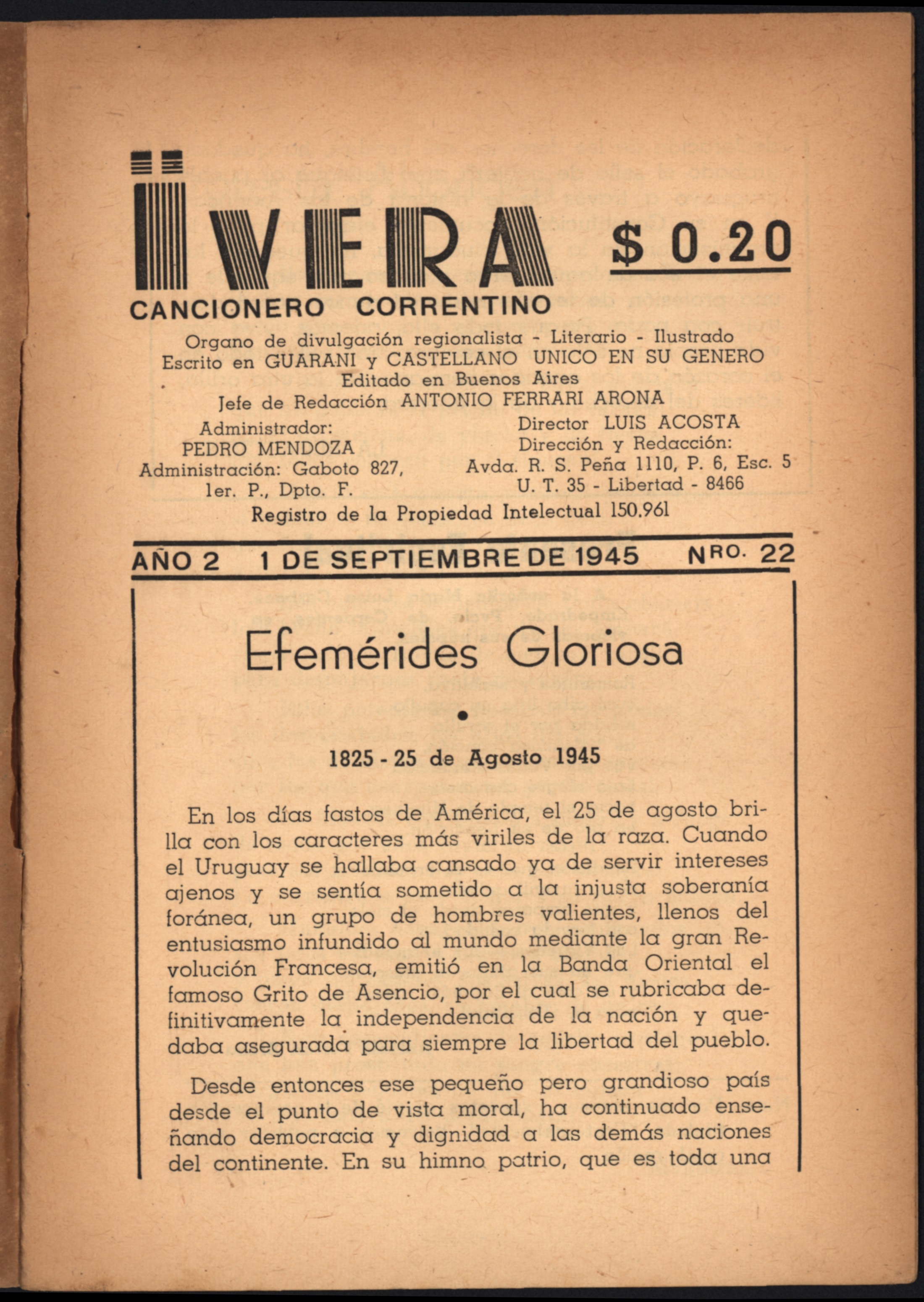 Nº 22 - 1 de Septiembre de 1945