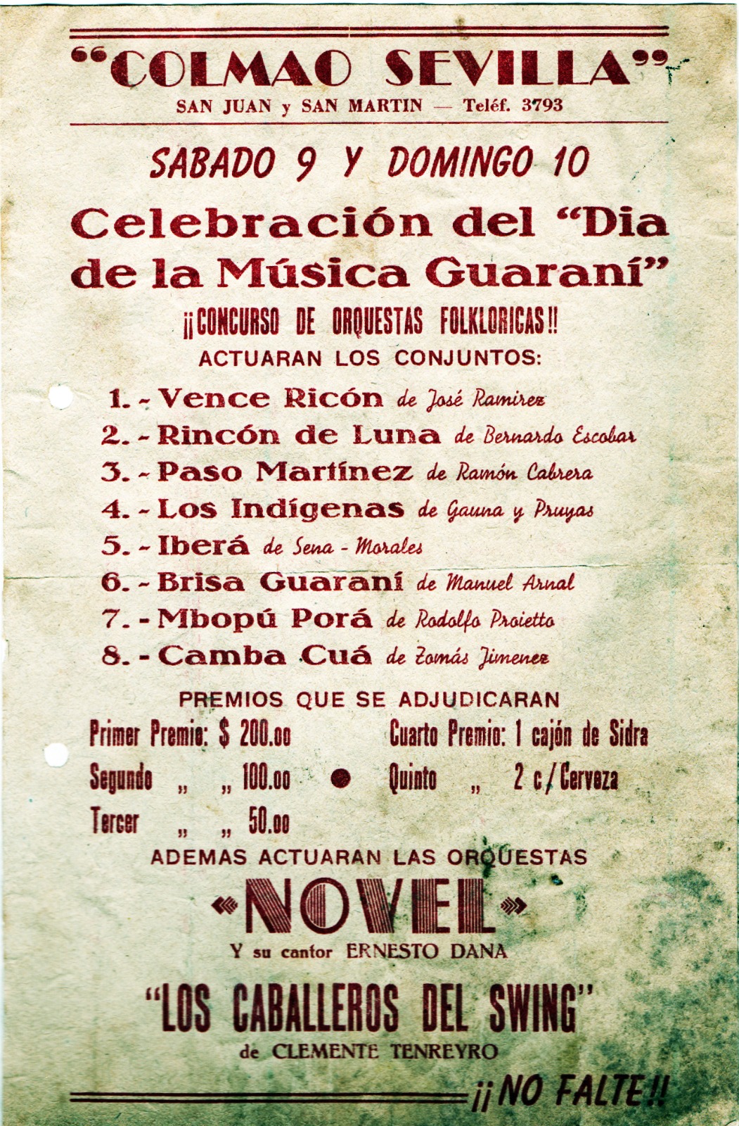 A principios de la década del 40 comienzan a presentarse en las principales pistas de la ciudad de Corrientes como “Punta Tacuara”, “El descanso”, “Colmao Sevilla” y el Salón Monumental”. En esta etapa los acompaño el cantor Mario Menéndez.